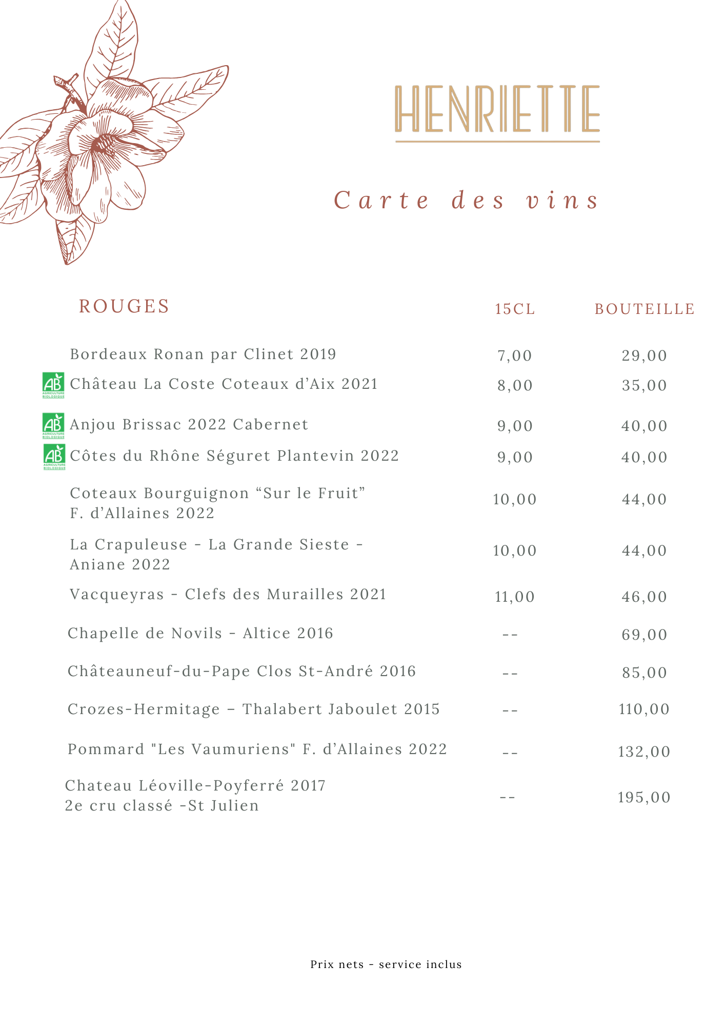 Sélection de crus issus directement des vignobles de producteurs indépendants, couvrant les grandes régions viticoles (Bordeaux, Bourgogne, Rhône, Loire, Alsace, Provence). Rouge, blanc, rosé et effervescent, mettant en avant authenticité et savoir-faire. Fromages AOP, charcuteries artisanales, huitres, taramas, miels, et autres spécialités régionales, soigneusement sélectionnés auprès de producteurs locaux pour une expérience gustative typiquement française.